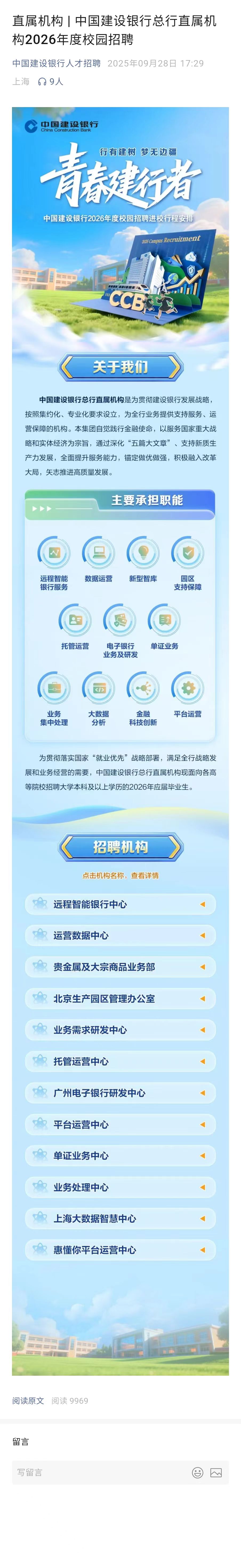 中国建设银行总行直属机构2026年度校园招聘